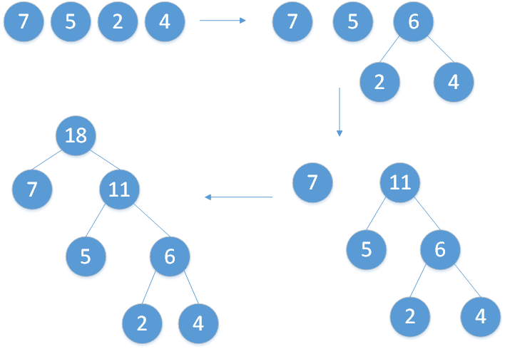 重复(2)和(3),直到F只含一棵树为止,这棵树即是 哈弗曼树
