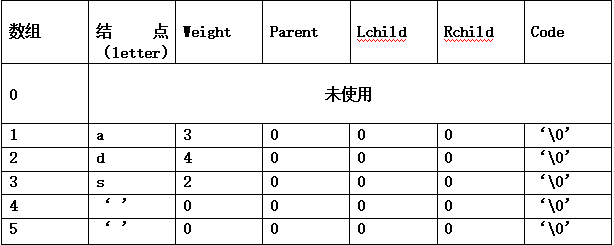 for(i=1; i<=n; i++){ //将1-n号单元中的双亲、左孩子、右孩子的下标都初始化为0